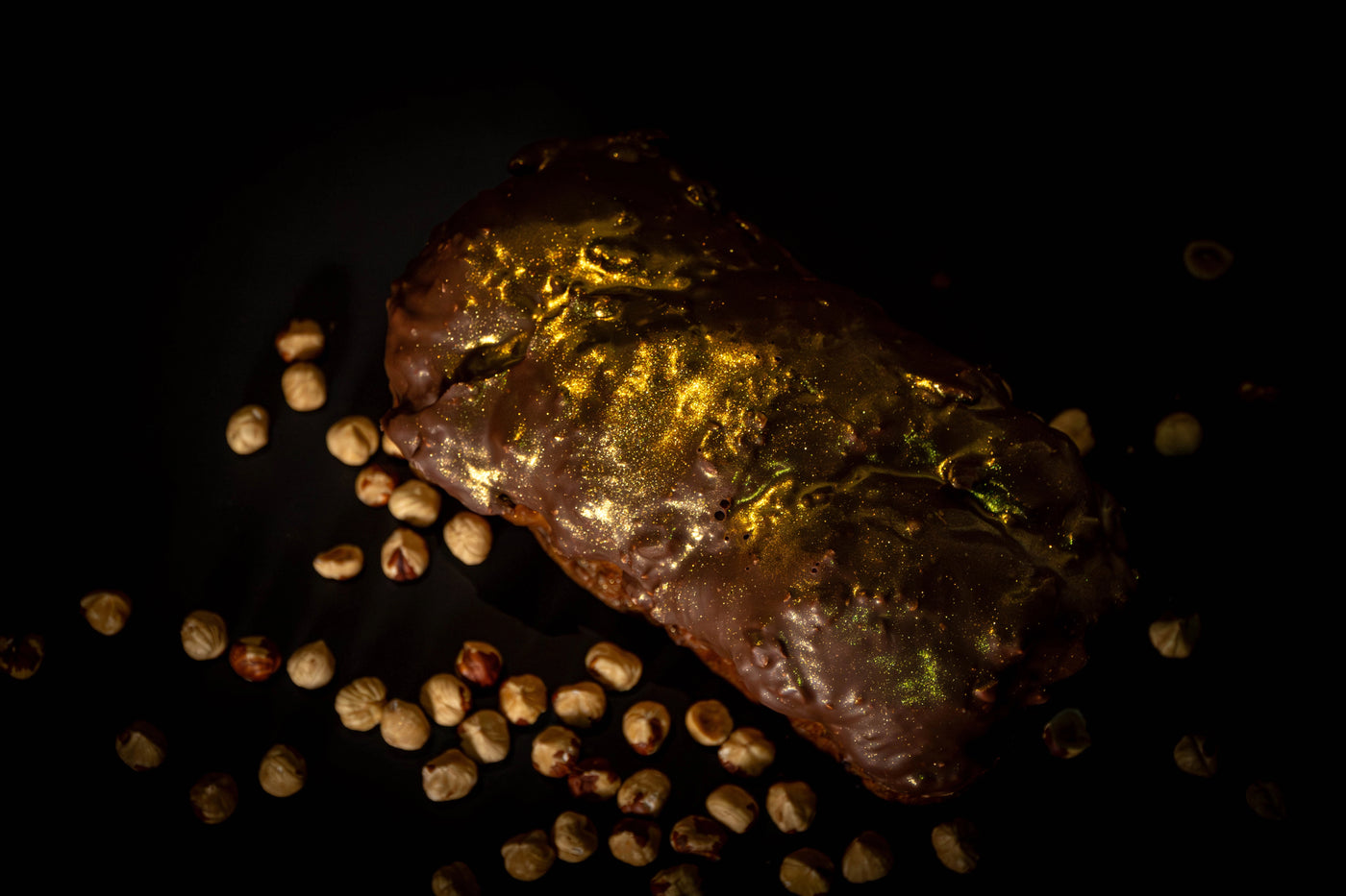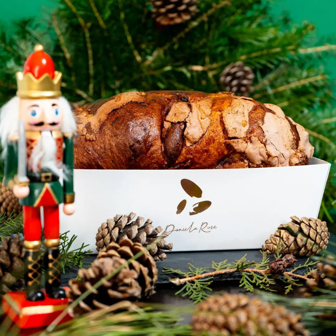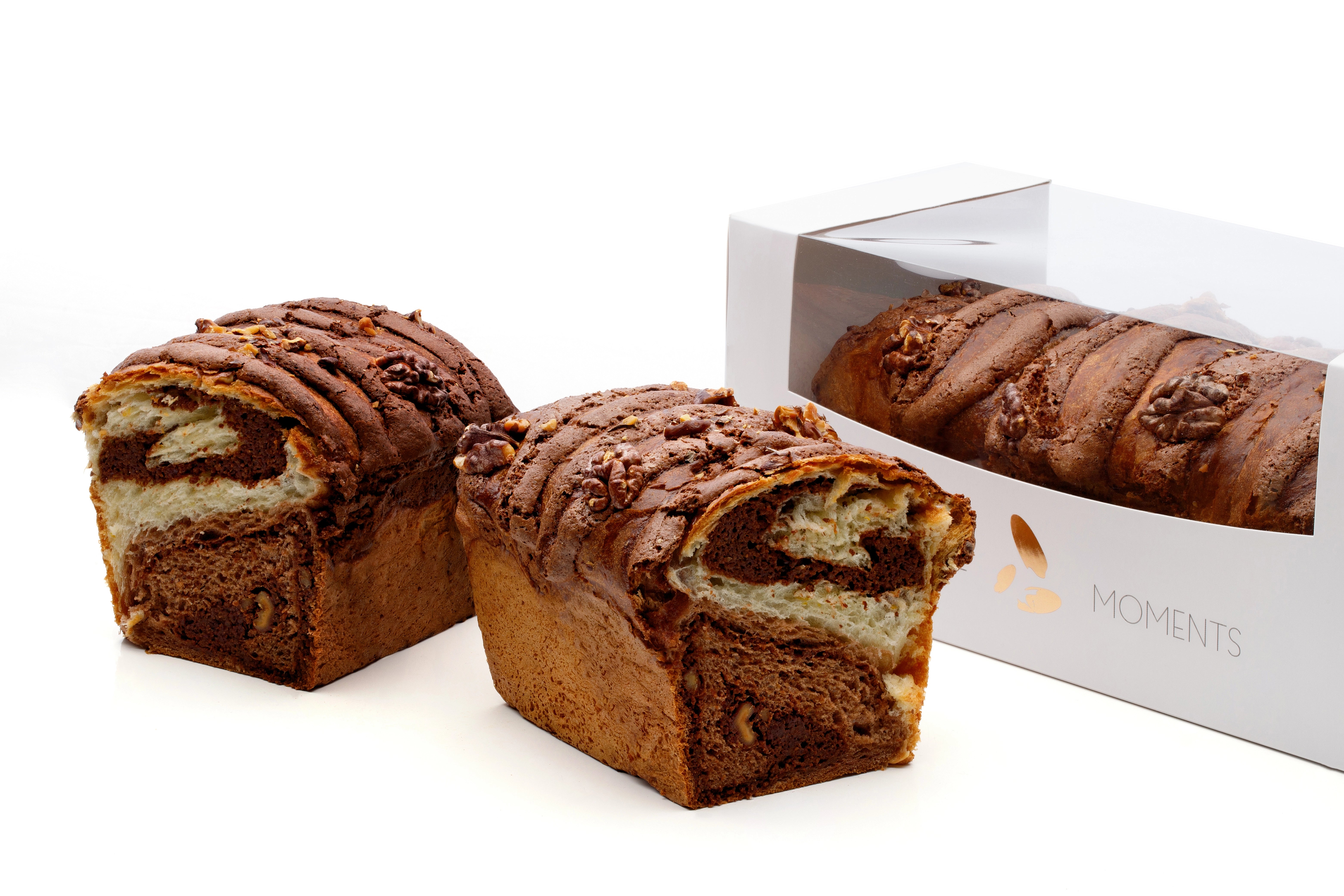 Aluat dospit lent, cu structură aerată și aromă de unt, umplut în dublu strat cu cremă de vanilie naturală și pastă de alune prăjite. Glazura de ciocolată adaugă densitate și un contrapunct amărui. Rezultatul este un cozonac cu profil rotund: dulce, ușor prăjit, echilibrat și stabil aromatic.