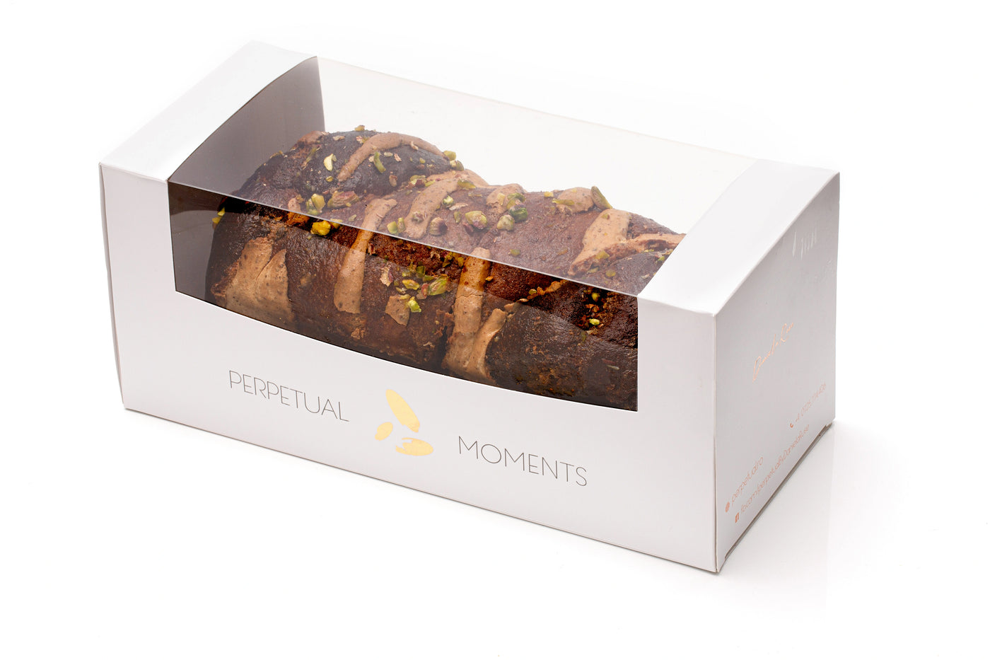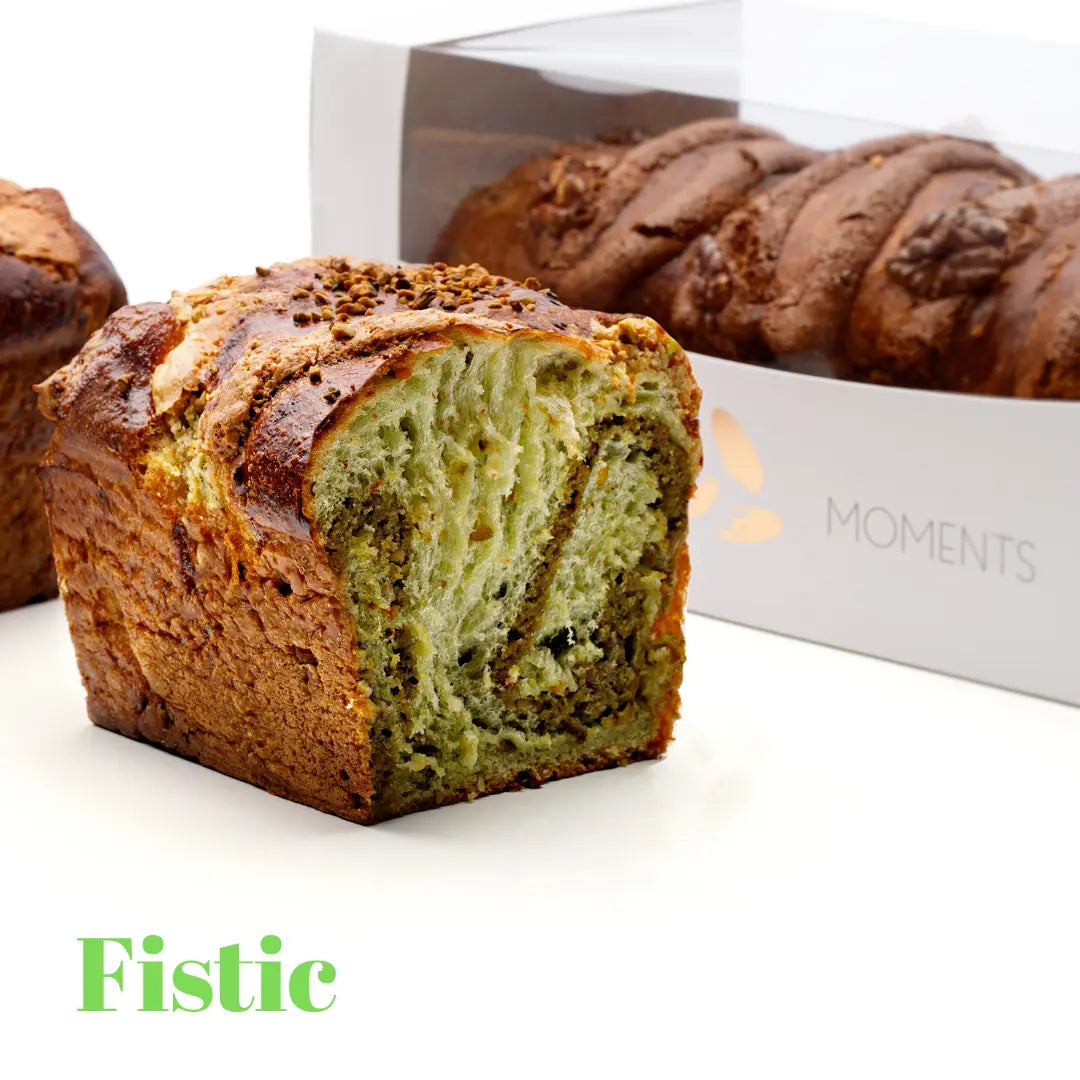 Un aluat moale, elastic, saturat cu unt și lapte, care susține două straturi de cremă densă de fistic. Gust vegetal, curat, ușor sărat, cu profunzime prăjită și textură cremoasă. Un cozonac construit pentru amatori de arome pure, fără artificii, cu identitate netă și intensitate constantă.