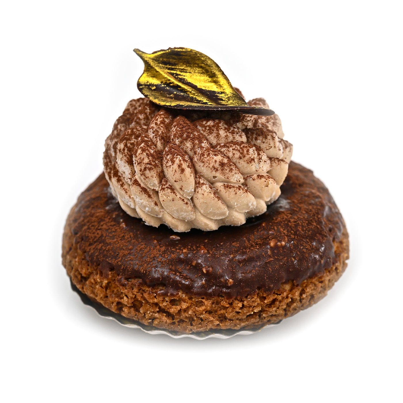 Un compus în trei timpi, fiecare definit de o nuanță a ciocolatei. De la lejeritatea catifelată a mousse-ului de ciocolată albă, la densitatea ciocolatei Callebaut 40.7%, până la nota intensă de Cacao Barry 55%, fiecare strat aduce profunzime și ritm. Blatul cu ulei de măsline și baza crocantă completează cu echilibru această construcție precisă și armonioasă.