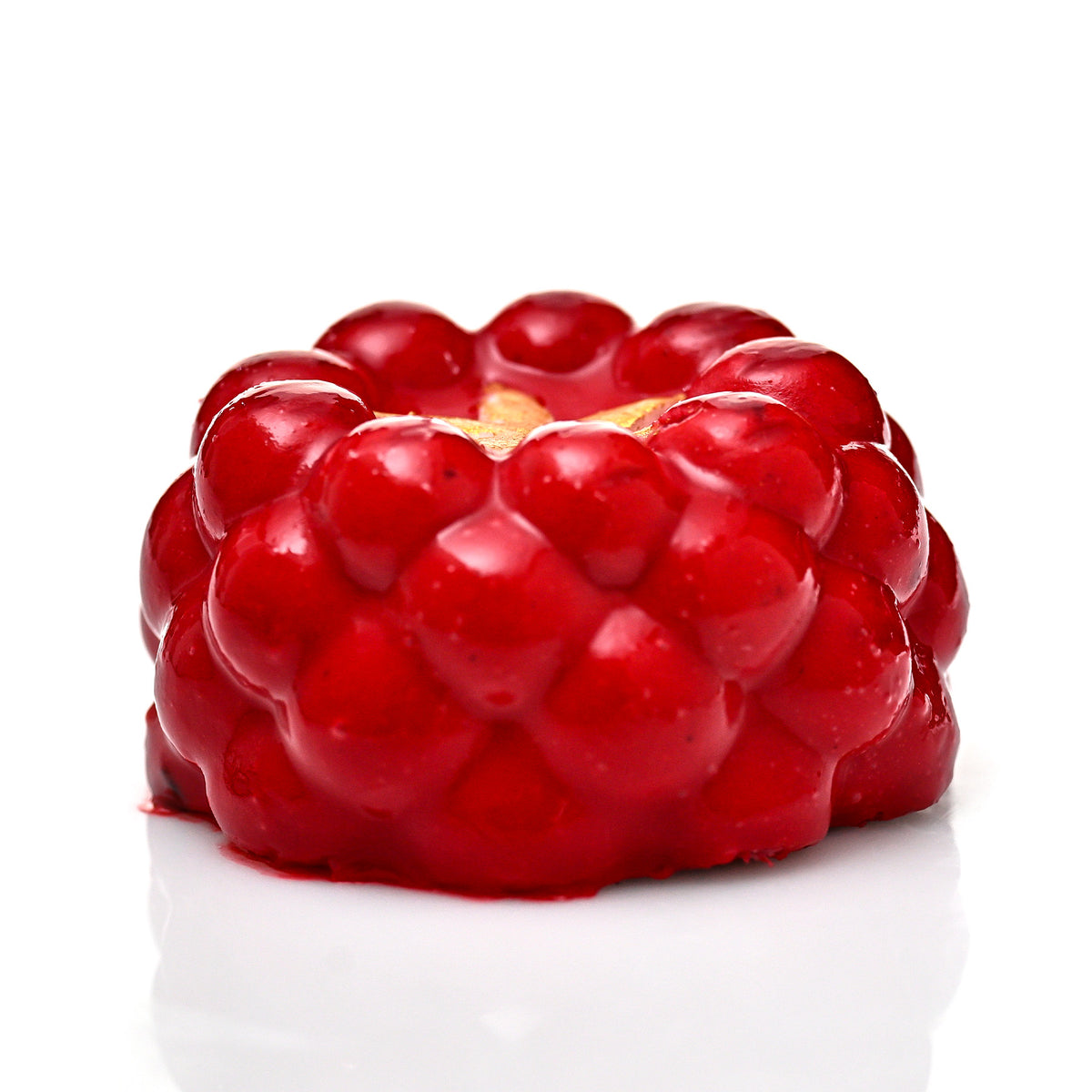 Un joc de contrast și echilibru, construit în jurul unor arome bogate, dar temperate cu grijă. Mousse-ul de mango aduce o prospețime solară, completată de jeleul intens de mure, în timp ce cremoso-ul de praline și stratul de migdale conferă adâncime gustativă. Blatul lejer și glazura lucioasă încheie compoziția într-o armonie vizuală și aromatică, subtilă și sofisticată.